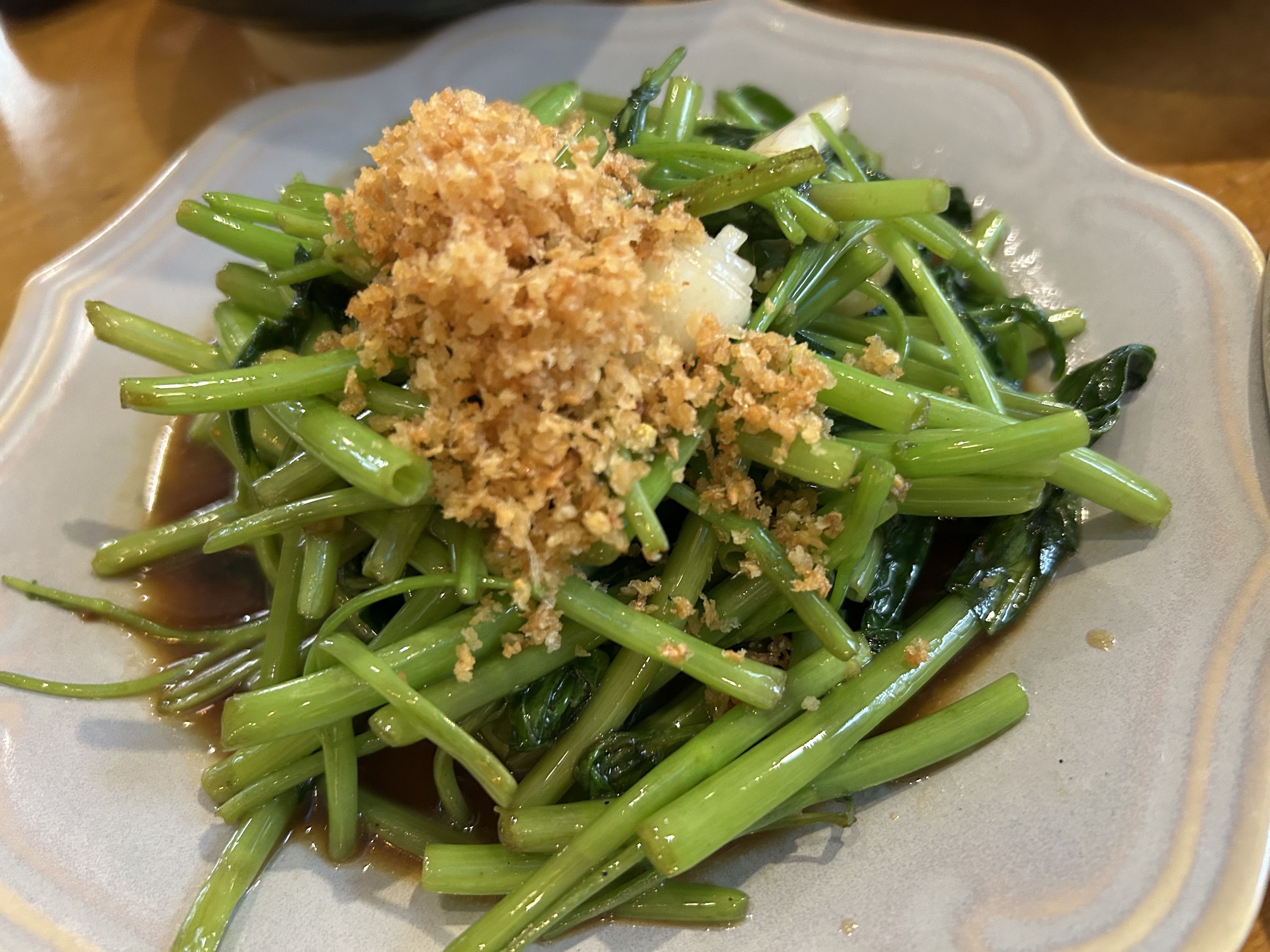 제제 중식당에 오면 꼭 주문해보고 싶은 메뉴가 바로 홍콩식 마늘 새우, 공심채 볶음, 날치알 볶음밥이에요. 먼저 홍콩식 마늘 새우는 바삭하게 튀긴 통새우에 마늘 향이 가득 배어 있는데 좀 짭짤해서 술안주로도 딱이고, 단품으로 즐겨도 정말 훌륭하답니다.