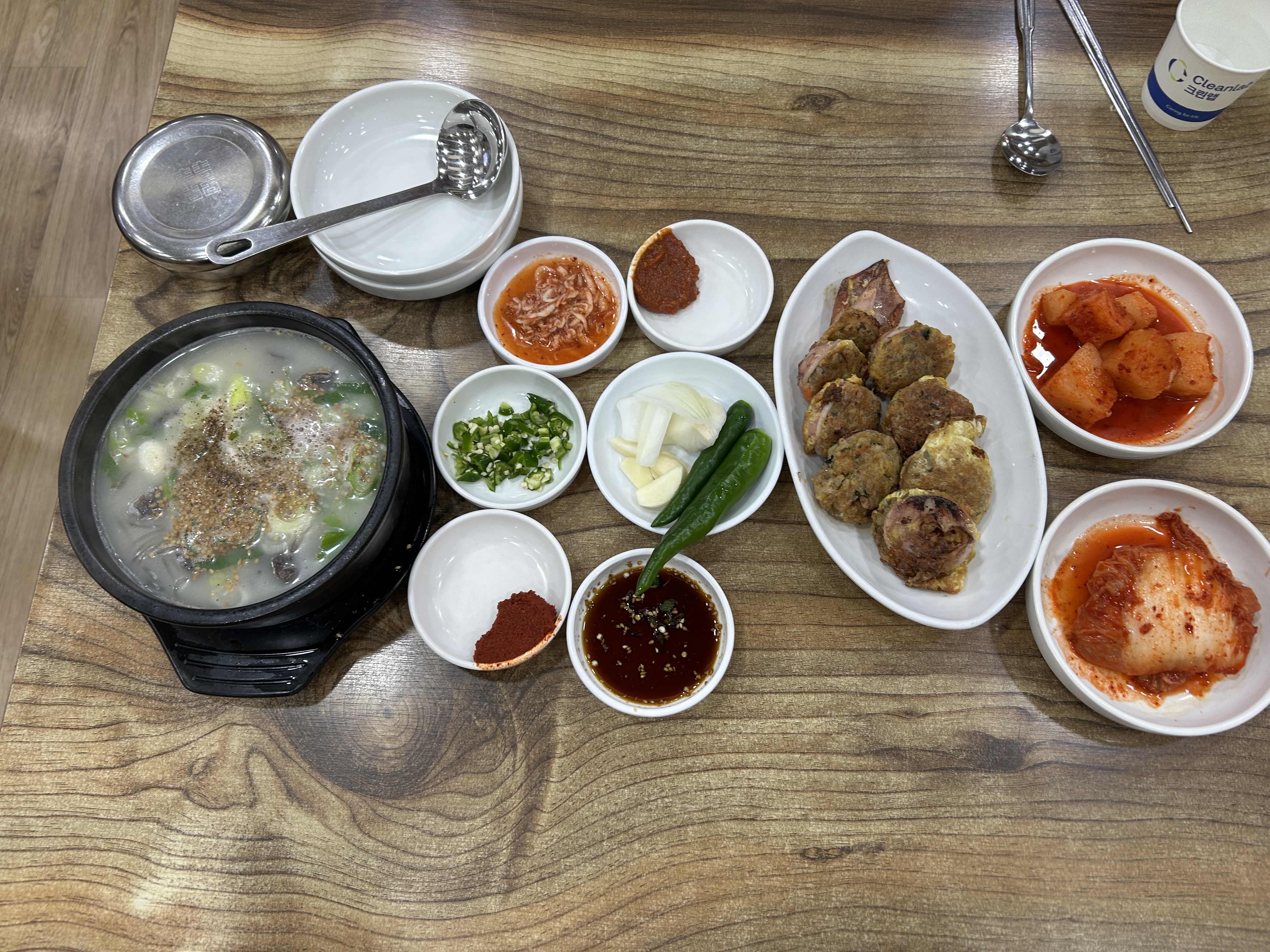 동해순대국의 대표 메뉴,순대국은 아침식사로 완벽한 선택이었어요. 가마솥에서 직접 끓여 내는 국물은 깊고 진하지만 깔끔한 맛이 일품었고 저는 순대만 넣었는데도 국물과 잘 어울렸어요. 특히 깍두기가 너무 맛있어서 함께 먹으니 잘 어울리더라고요. 한 숟갈 뜨는 순간 담백하면서도 구수한 국물 맛이 입안을 가득 채워 하루를 든든하게 시작할 수 있습니다.