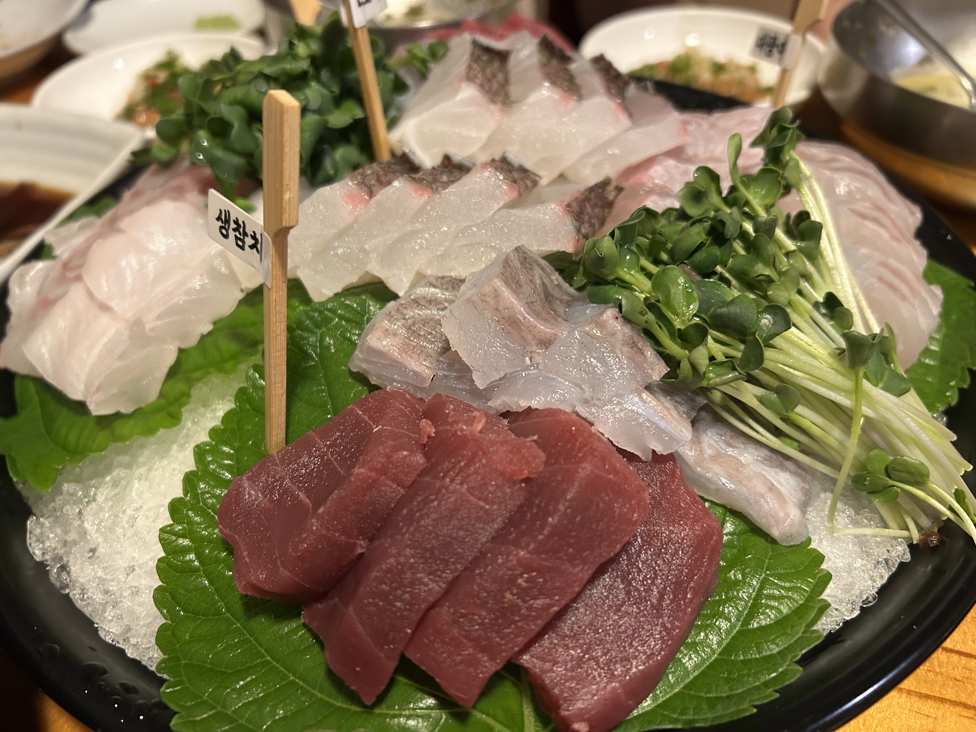 모둠회 코스는 2~3인 기준으로 충분히 푸짐하니, 처음 방문 시 모둠회 코스 1인을 인원수로 선택하시면 되요. 중, 대, 특대 코스는 생선의 종류가 달라지니 서버에게 제철 생선 체크해보시고 상황에 맞게 주문 하시면 될 듯 해요. 반찬과 회 그리고 요리들로 배가 찰때쯤 구이와 매운탕도 나오니 조절 하셔서 드셔야 진짜 맛있는 냄비밥과 매운탕을 맛보실 수 있습니다. 저는 이미 배가 찬 상태에 맞이해서 한 숟깔만 먹고 눈으로만 보는 상황이 여러번 있었어요. 주말 방문 시 예약 필수에요.
