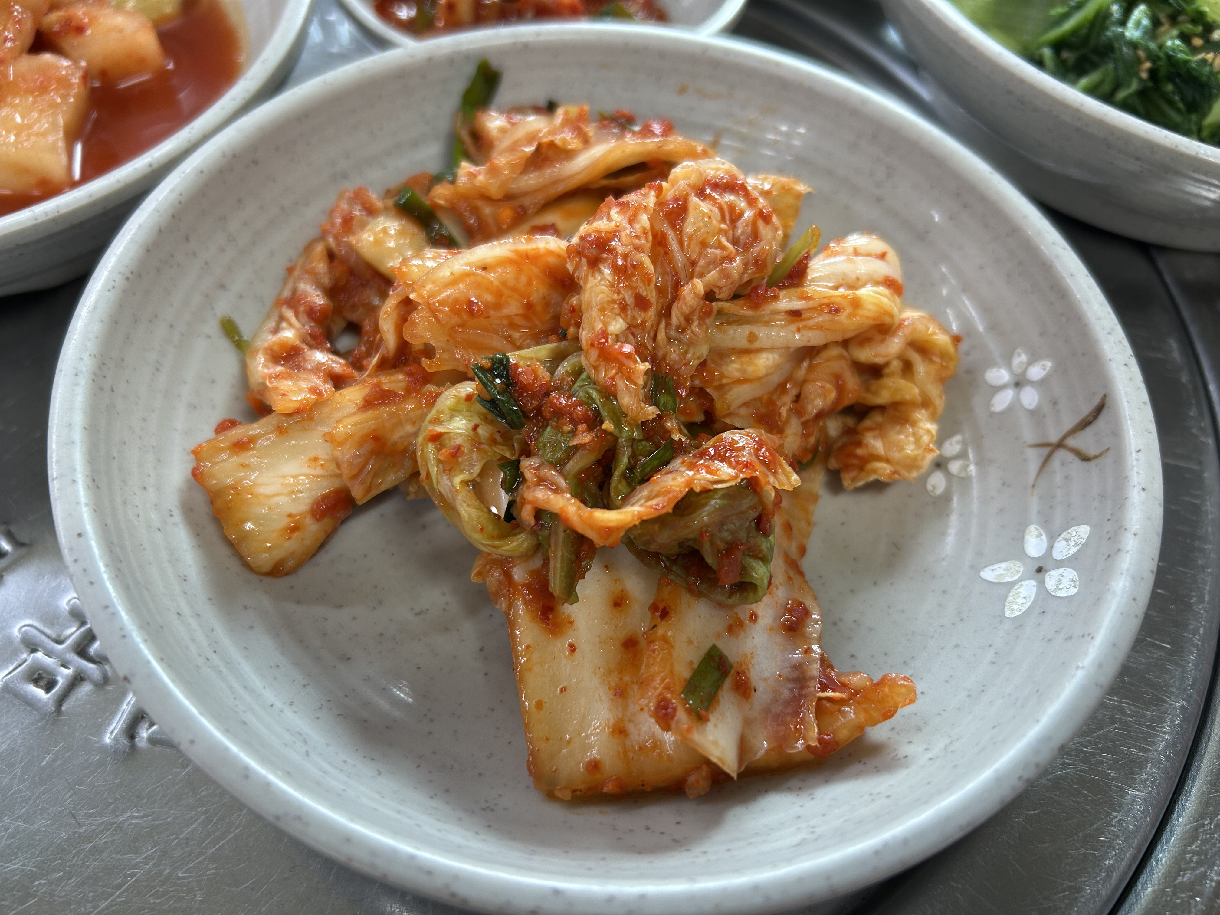 들꽃가든의 매력 중 하나는 바로 소박하지만 직접 만든 밑반찬이에요. 기본 반찬으로 나오는 배추겉절이와 깍두기는 아삭하면서도 간이 딱 맞아 국물과 함께 먹으면 더 맛있고, 고추 된장 무침과 오징어 젓은 밥과 함께 곁들였을 때 감칠맛이 살아나요. 또한 얼갈이 배추 무침은 부드럽고 신선한 맛으로 전체 식사의 균형을 잡아주죠. 특별할 것 없는 엄마가 집에서 해주시는 듯한 밑반찬이 자극적이지 않은 편안함을 줘요.