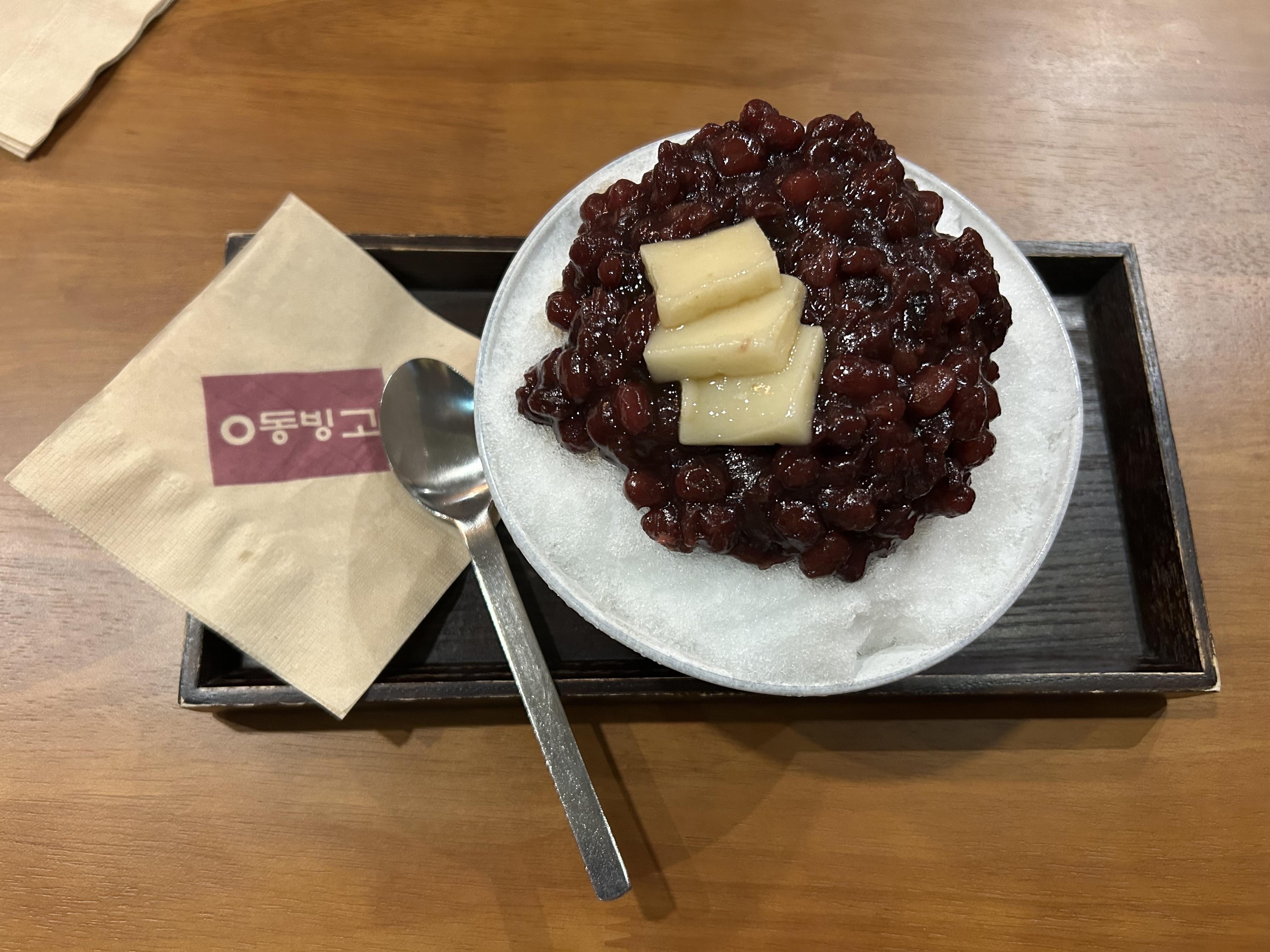동빙고의 대표 메뉴는 역시 팥빙수(오리지널)예요. 곱게 간 얼음 위에 단팥과 쫀득한 떡이 듬뿍 올라가 있는 전통 스타일이라, 요즘 유행하는 우유빙수나 호텔 빙수와는 또 다른 매력이 있어요. 팥빙수 부심이 있는저는 항상 오르지널 팥빙수를 주문합니다. 1인 1빙해요. ㅎㅎ 오리지널 팥빙수는 팥을 직접 쑤는 곳이라 단맛이 과하지 않고 팥의 고소함이 살아 있어 끝까지 맛있게 먹을 수 있어요. 한 입씩 떠 먹을 때마다 너무 행복해요. 위에 올라간 쫀득한 찹쌀떡도 중간중간 별미입니다. 말모말모.