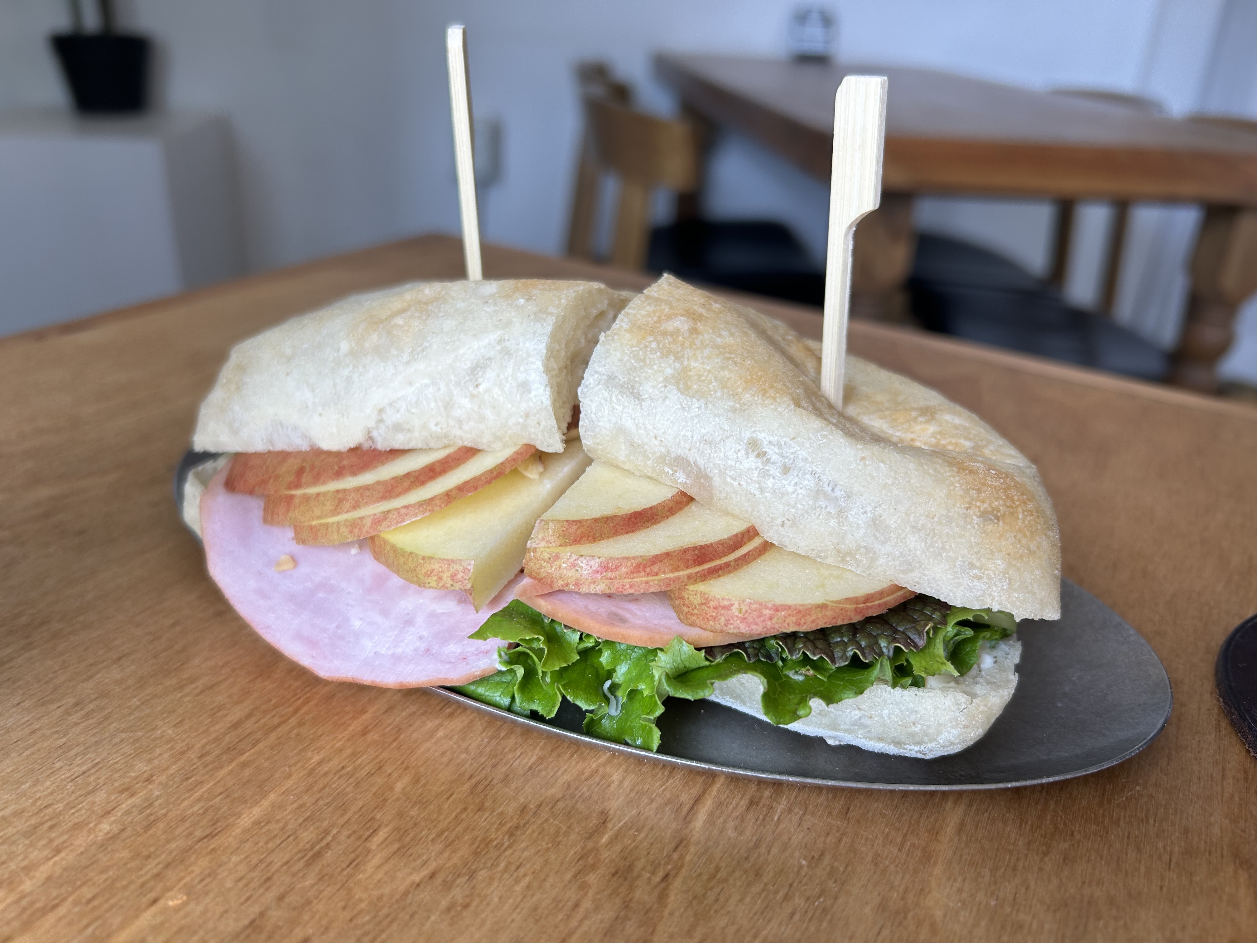 이번 방문에서 제가 선택한 메뉴는 애플햄 샌드위치와 커피였어요. 달콤한 사과의 상큼함과 짭짤한 햄의 조합이 생각보다 훨씬 잘 어울려서 첫 입부터 깜짝 놀랐어요. 겉은 바삭하고 속은 촉촉하게 구운 치아바타빵 속에 아삭한 사과의 식감과 은은한 단맛이 퍼지면서 부담 없이 즐길 수 있었고, 고소한 햄이 감칠맛을 더해줘서 눈 깜짝할 사이에 반쪽을 먹었어요. 점심을 예약해두지 않았더라면 더 다양한 샌드위치를 주문했을꺼에요. 다음에는 다른 샌드위치도 맛 보려고요.