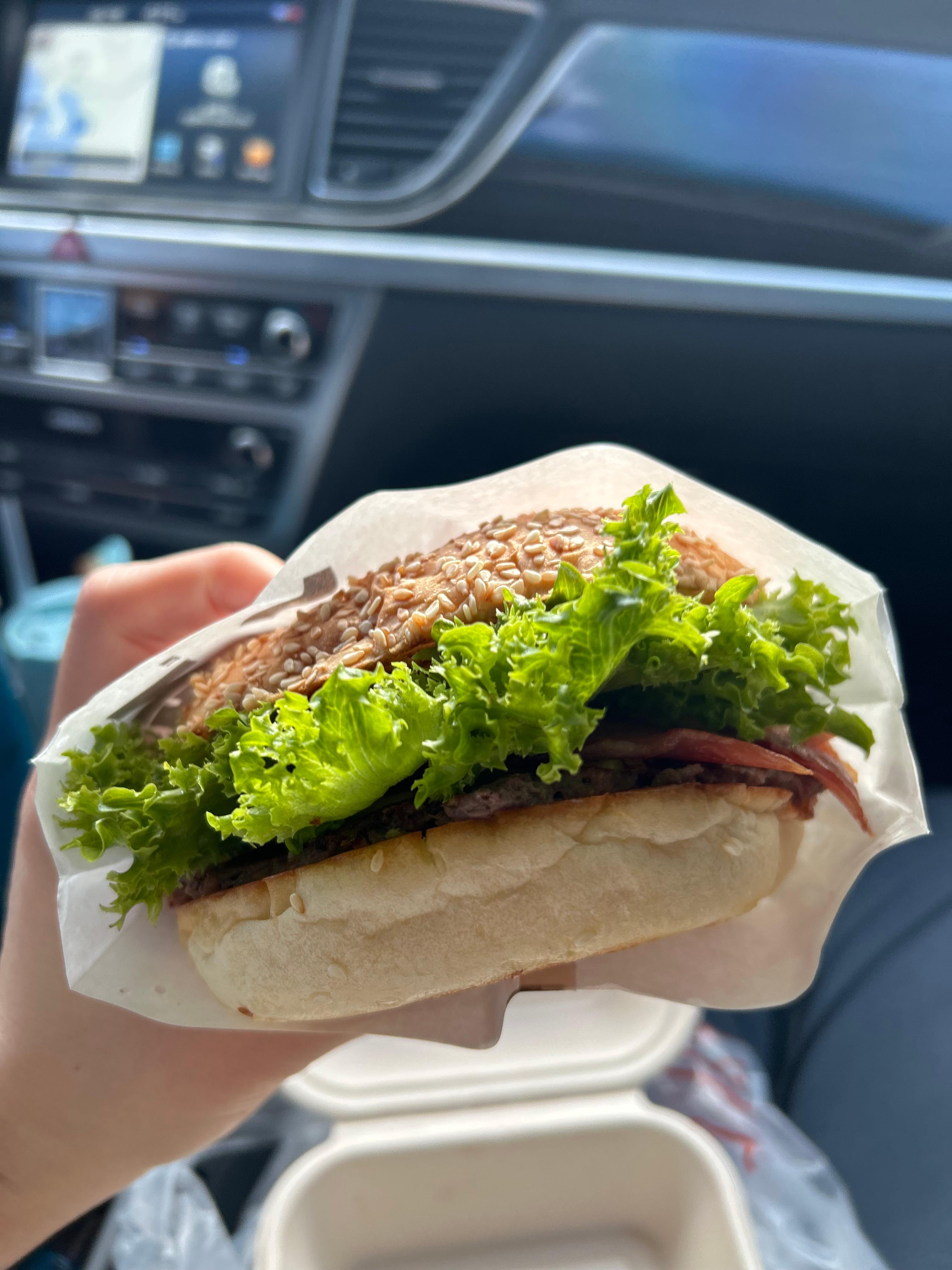 그곳에서 버거를 즐기는 것이 아쉬워 이날은 베이컨 치즈버거 단품 1개를 테이크아웃해와서 서울로 돌아오는 차안에서 또 먹었어요. 식어도 역시 맛있었습니다.
