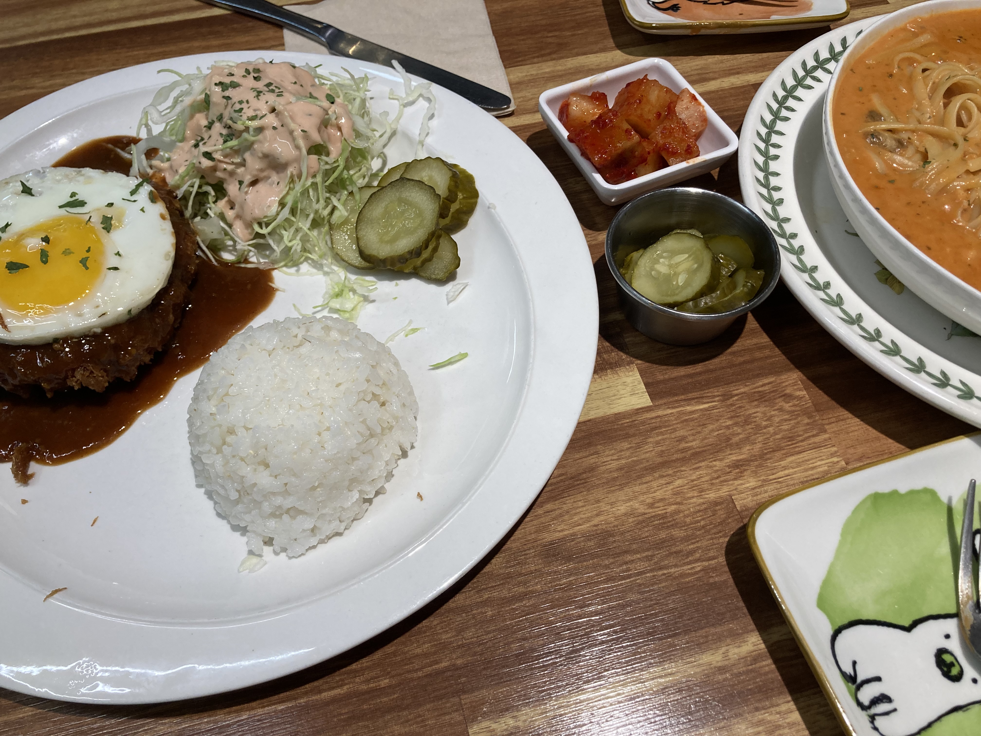 정순함박의 대표 메뉴는 단연 함박 스테이크예요. 두툼한 패티에서 육즙이 가득 흘러 나오고, 특제 소스가 어우러져 한 입 먹는 순간 “와, 이래서 방송에 나왔구나” 싶은 맛이었어요. 이제까지 먹었던 함박스테이크와 전혀 달랐지만 이게 함박스테이크일 것이다란 생각이 들었어요. 겉을 바삭하게 튀겨내 고소하면서도 담백한 패티와 풍미 가득한 소스, 그리고 함께 나오는 캐요네즈를 뿌린 양배추조합이 정말 맛있었어요. 함박 한 입, 밥 한 숟가락 조합으로 먹으면 든든하고 행복한 한 끼 완성!!