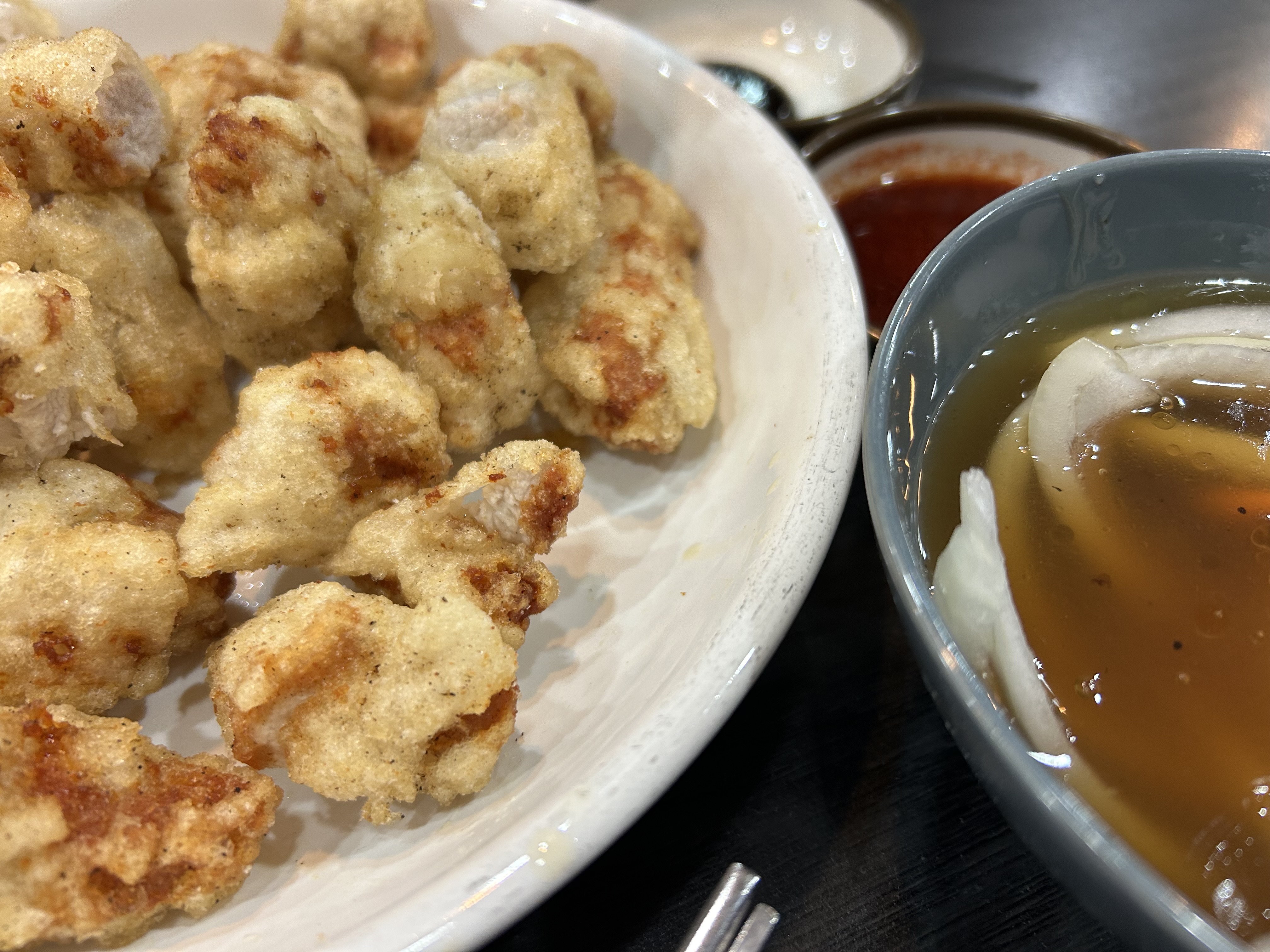 짬뽕이 워낙 맛있어서 단품으로도 충분하지만, 하오짬의 탕수육은 꼭 함께 주문해보세요. 겉은 바삭하고 속은 촉촉해서 식감이 정말 좋아요. 소스는 새콤달콤하면서 진득한 스타일이라 짬뽕의 매운맛 사이사이에 먹기 딱이에요. 짬뽕 한입 → 탕수육 한입, 이 조합은 진짜 완벽 그 자체랍니다!