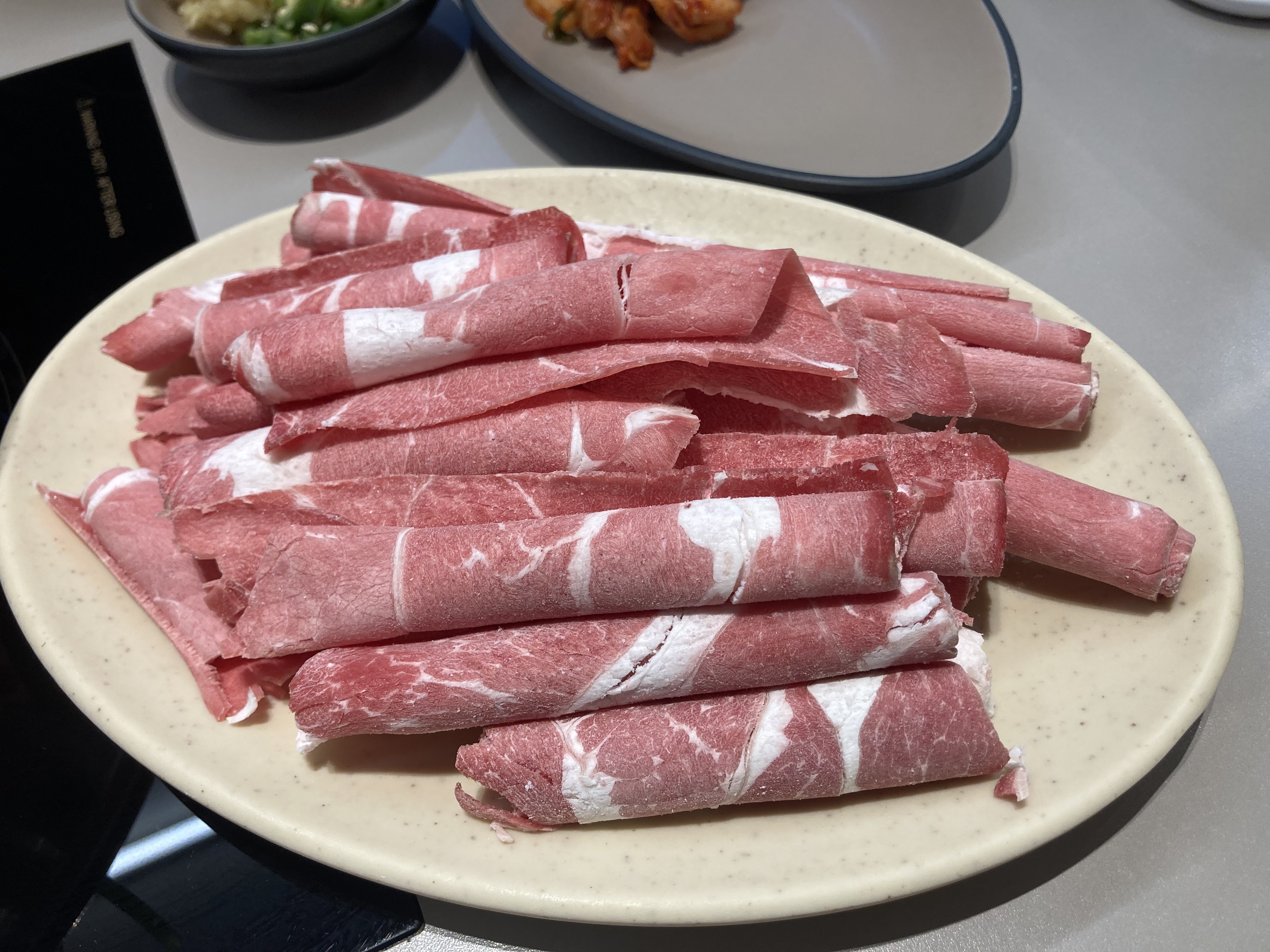 제가 주문한 메뉴는 바로 원조샤브 손칼국수였어요. 보글보글 끓는 육수에 신선한 채소와 소고기를 넣어 샤브샤브처럼 즐기다가, 마지막엔 쫄깃한 손칼국수를 넣어 국물까지 깔끔하게 마무리! 육수는 해물과 한우 사골을 섞은 듯 깊고 진했는데, 얼큰하면서도 부담스럽지 않은 국물 맛이 정말 인상적이었어요. 특히 면이 일반 칼국수보다 훨씬 탱글탱글해서 퍼지지 않고, 끝까지 쫄깃하게 씹히는 식감이 최고였답니다. 국물 한 숟갈, 면 한 젓가락, 그리고 고기 한 점— 이 조합이 ‘왜 얼크니 칼국수가 대치동 맛집인지’ 완벽히 설명해줬어요 :)