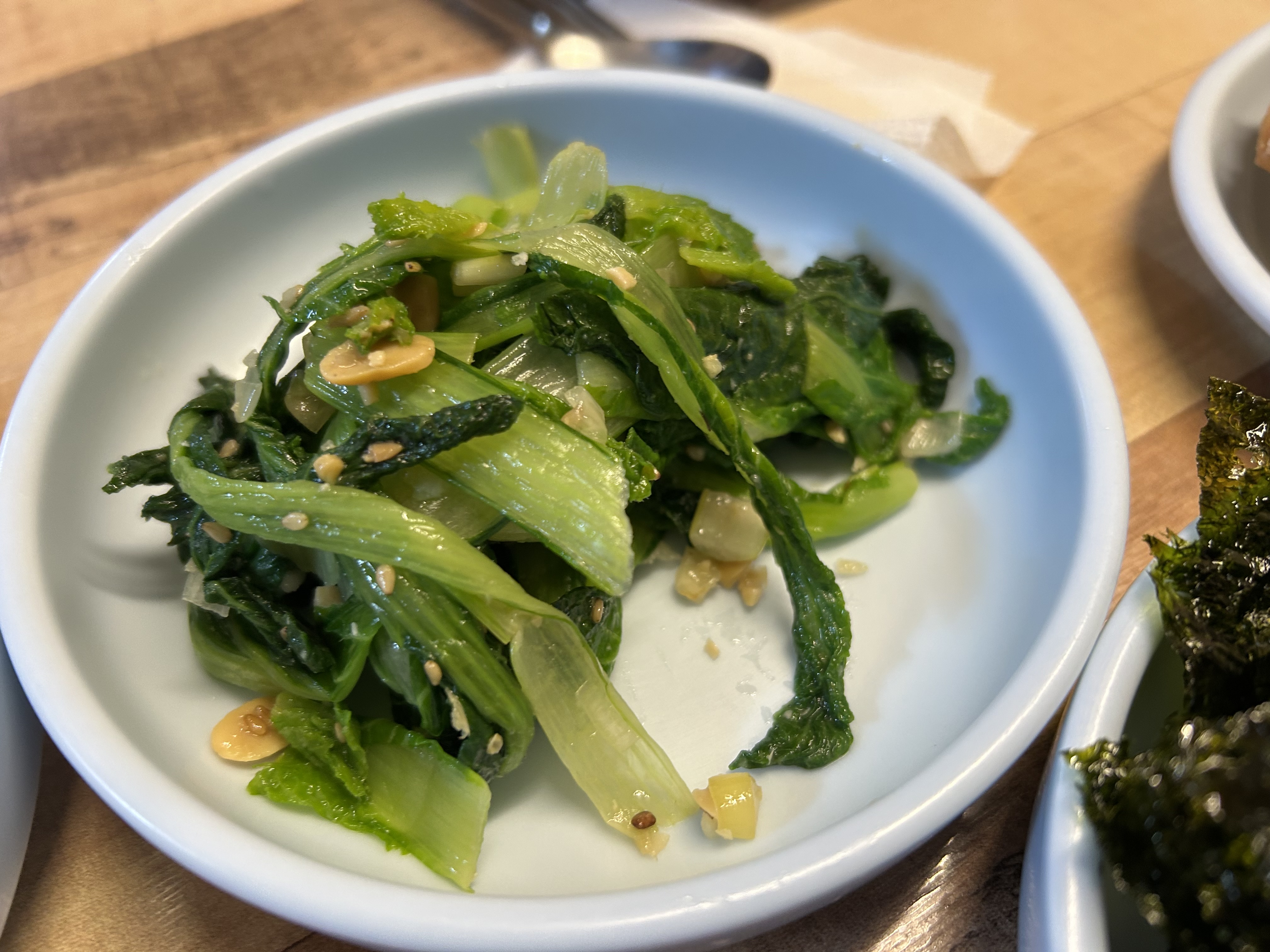 국이나 찌개 메뉴도 그날그날 달라진다고 하는데 집이 아니면 잘 맛 볼 수 없는 소고기 뭇국이 나왔어요. 겨울무는 달잖아요, 달큰한 무의 맛과 소고기의 깊은맛이 다른 걸 첨가하지 않은 슴슴하고 담백한 맛이어서 반찬 중간중간 떠먹기에 좋았어요.
