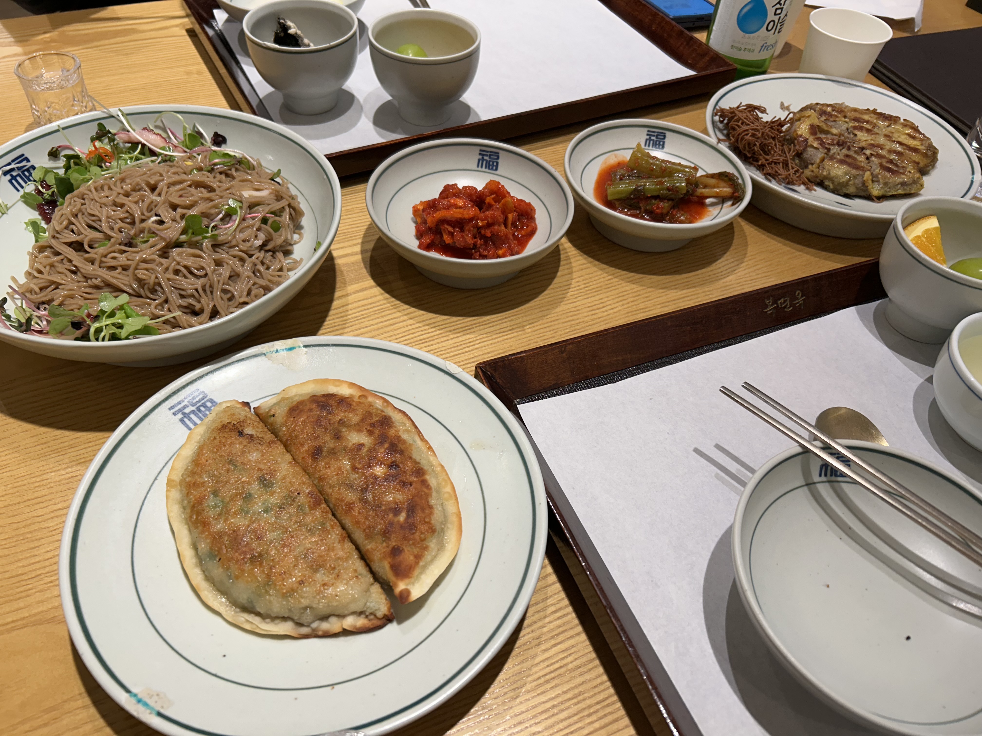 오리지널 평양냉면뿐 아니라 문어 들기름 비빔냉면, 수제군만두, 통완자, 수육, 제육 일품 불고기까지 다양한 메뉴가 있어 모두를 만족할 수 있는 곳이라 두번째 방문때는 위의 음식들을 모두 다 맛봐봤어요. 처음 방문했을 땐 ‘냉면집이 이렇게 다양한 메뉴를? 모아니면 도이겠다’ 생각했었어요. 그런데 "모" 였습니다.^^