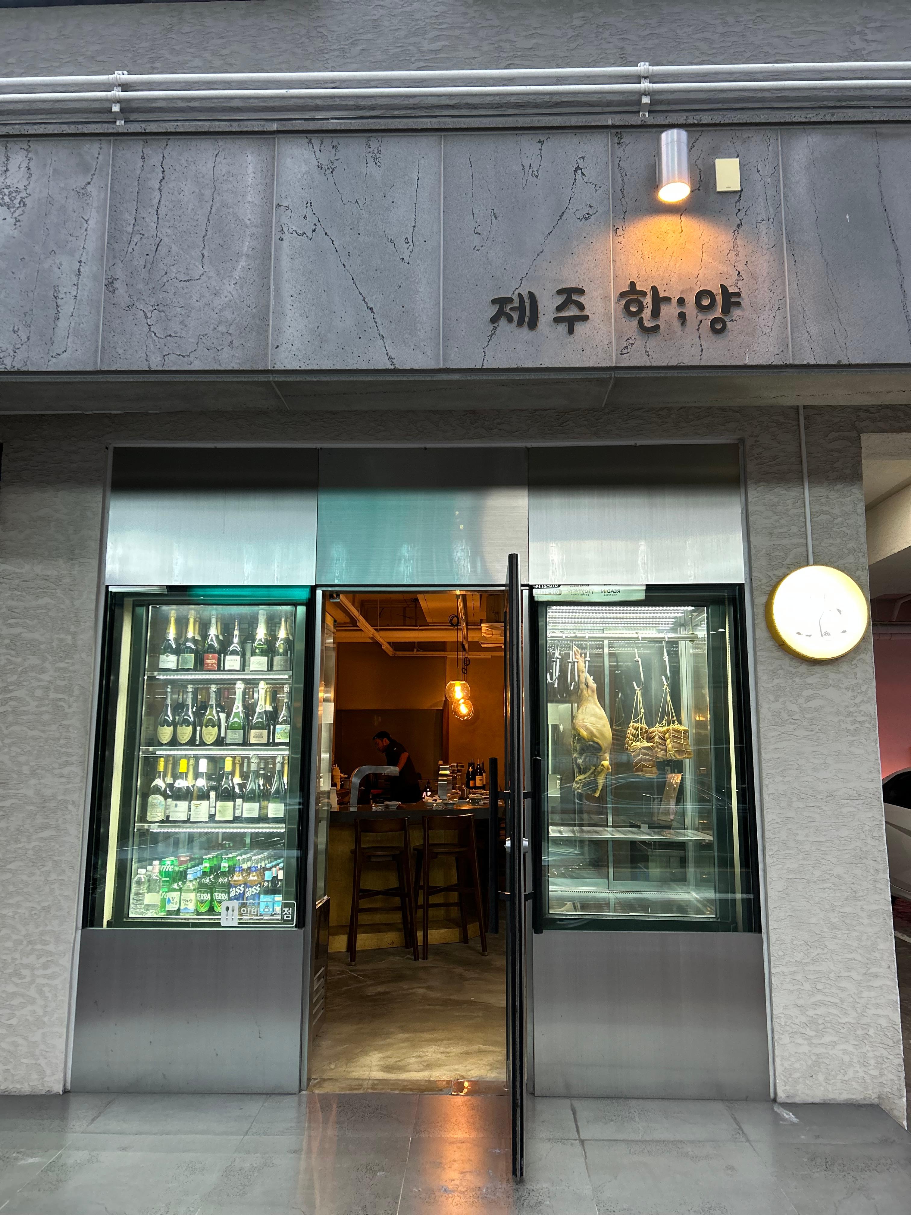 안녕하세요. 제가 고기를 좀 먹어봤다면 먹어본 녀자인데 요즘 맛있는 돼지고기 맛집들을 많이 알게 되는 것 같아요. 서귀포에서 저녁을 먹으려다 새로운 곳에 가고 싶어 여기저기 배회하며 시간을 좀 보냈어요. 그러다 서귀포 신시가지에 있는 외부가 특이해서 이끌려 들어갔던 흑돼지집이 있어 소개해드리려고 해요. 사실 이곳은 8개의 자리만 마련되어 있는 예약제 식당이라 안 알려 드리고 싶은 곳인데 좋은 것은 나눠야하니 큰맘 먹고 풀어 봅니다. 사실, 제주에서 이렇게 특별한 고기 오마카세를 만날 줄은 정말 몰랐어요. 정육점을 운영하는 사장님이 그날 아침 도축한 돼지만 선별해 제공하는 곳인데 저는 1일 한정으로 맛볼 수 있는 흑돼지 모듬세트를 먹고 완전히 반했어요. 처음 먹어보는 돼지 지방의 식감이었고 “신선한 고기란 이런 거구나…” 하는 감탄이 절로 나오더라고요.