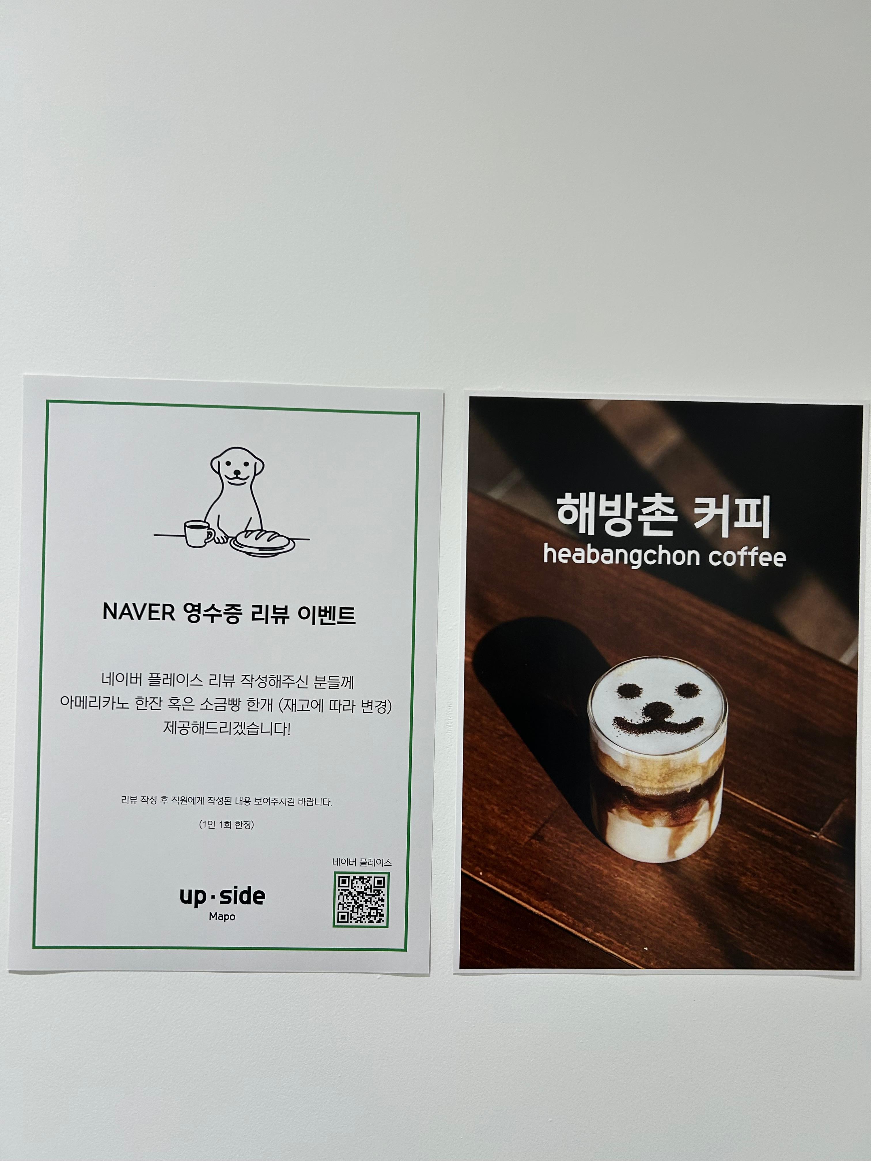 업사이드 커피 마포는 단순히 귀엽기만 한 카페가 아니었어요. 강아지 감성이라는 테마를 바탕으로 하면서도 커피의 맛과 로스팅 품질이 탄탄해 ‘겉만 번지르르한 카페’들과 확실히 구분됩니다. 해방촌커피는 맛의 깊이가 살아 있고 스콘은 기본에 충실했으며, 공간 전체는 따뜻하고 편안해 오래 머무르고 싶은 곳이었습니다.