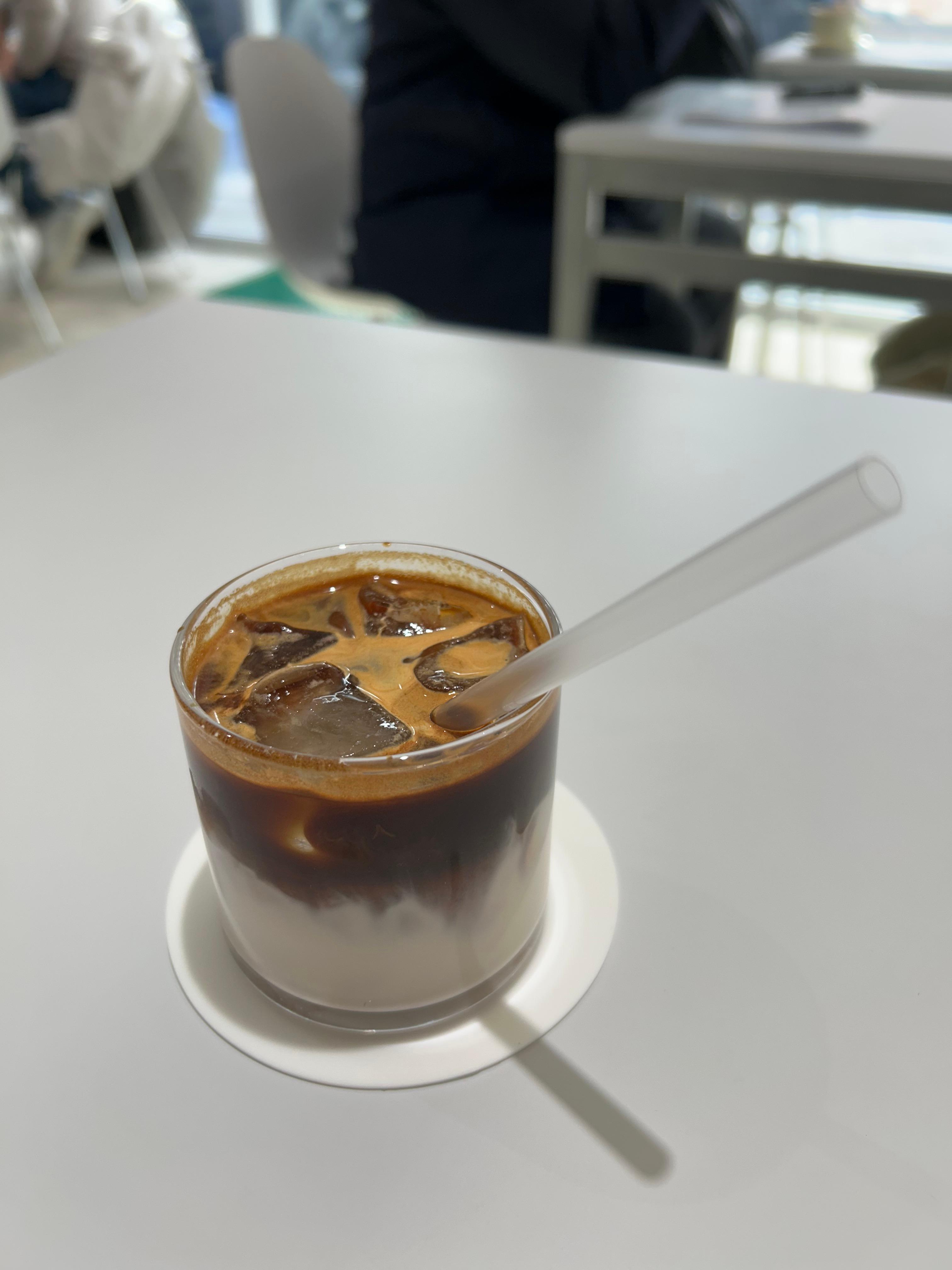 일주일 만에 두 번째 방문을 했는데 두번째 방문에는 지난번과는 다른 메뉴로 주문해봤어요. 제가 마신 메뉴는 오트 업라떼, 그리고 같이간 동생은 산미 있는 원두로 선택한 아메리카노를 주문했어요. 동생이 마신 아메리카노는 첫 모금부터 산뜻한 산미가 가득 올라와서 정말 깔끔하고 맛있었고, 제가 마신 오트 업라떼는 마치 참기름을 넣은 듯 고소하고 달달한 풍미가 진짜 매력 있었어요. 부드럽고 고소한 맛이 은근 중독적이더라고요. 여기에 제가 좋아하는 앙버터까지 곁들이니 조합이 완벽했습니다. 두 번째 방문이 더 만족스러웠어요.