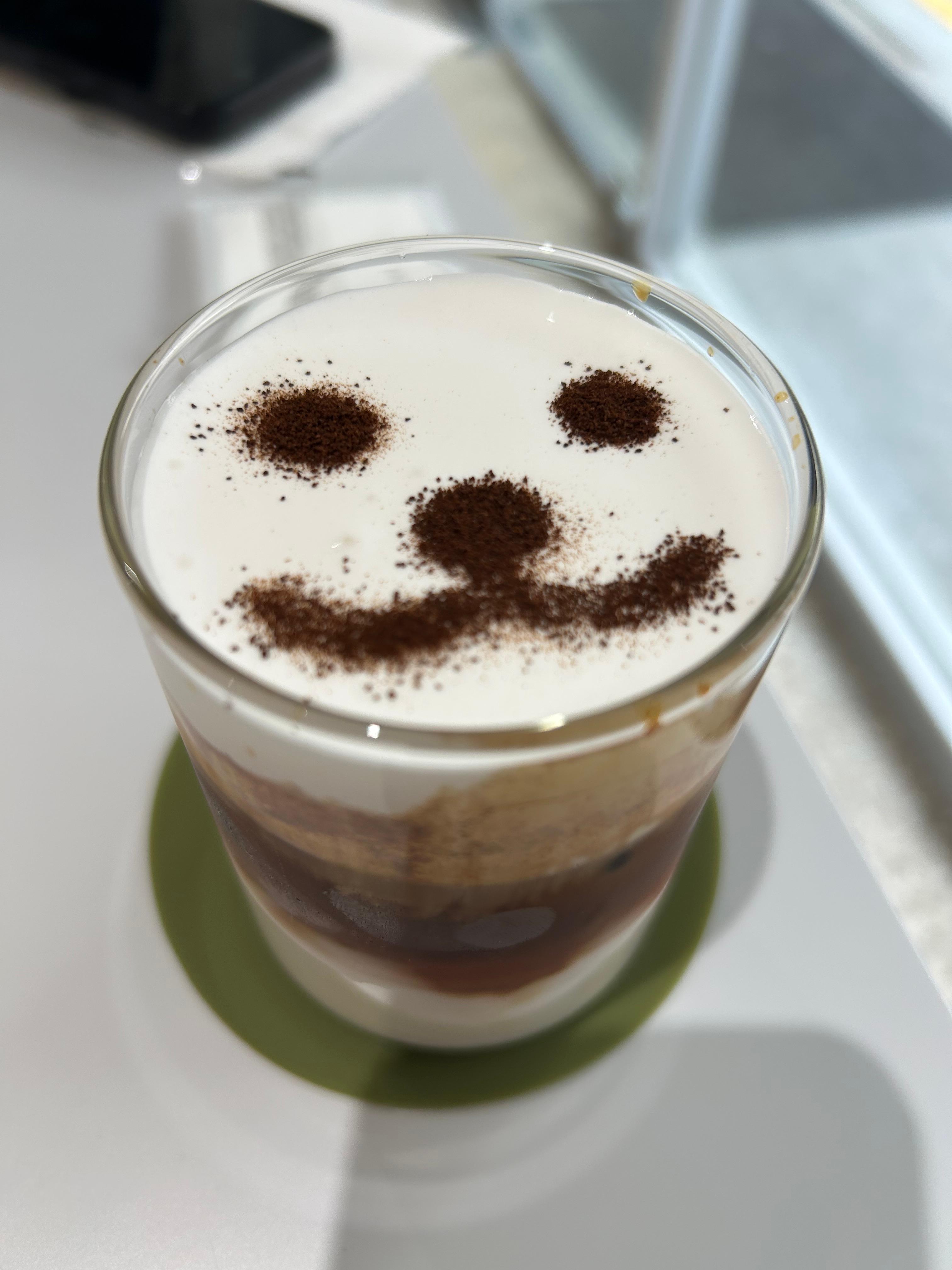이 카페가 특별하게 느껴졌던 건 작은 요소까지 신경 쓴 흔적이 많아서였어요. 컵 홀더의 강아지 캐릭터, 귀여운 문구들, 그리고 곳곳에 붙어 있는 작은 포스터들까지 아기자기하고 감성적입니다. 사장님으로 보이는 여자분과 직원으로 보이는 분 두분이 계셨는데 개인카페와 같은 응대였어요. 주문 방식이나 자리 안내도 매끄러웠어요.