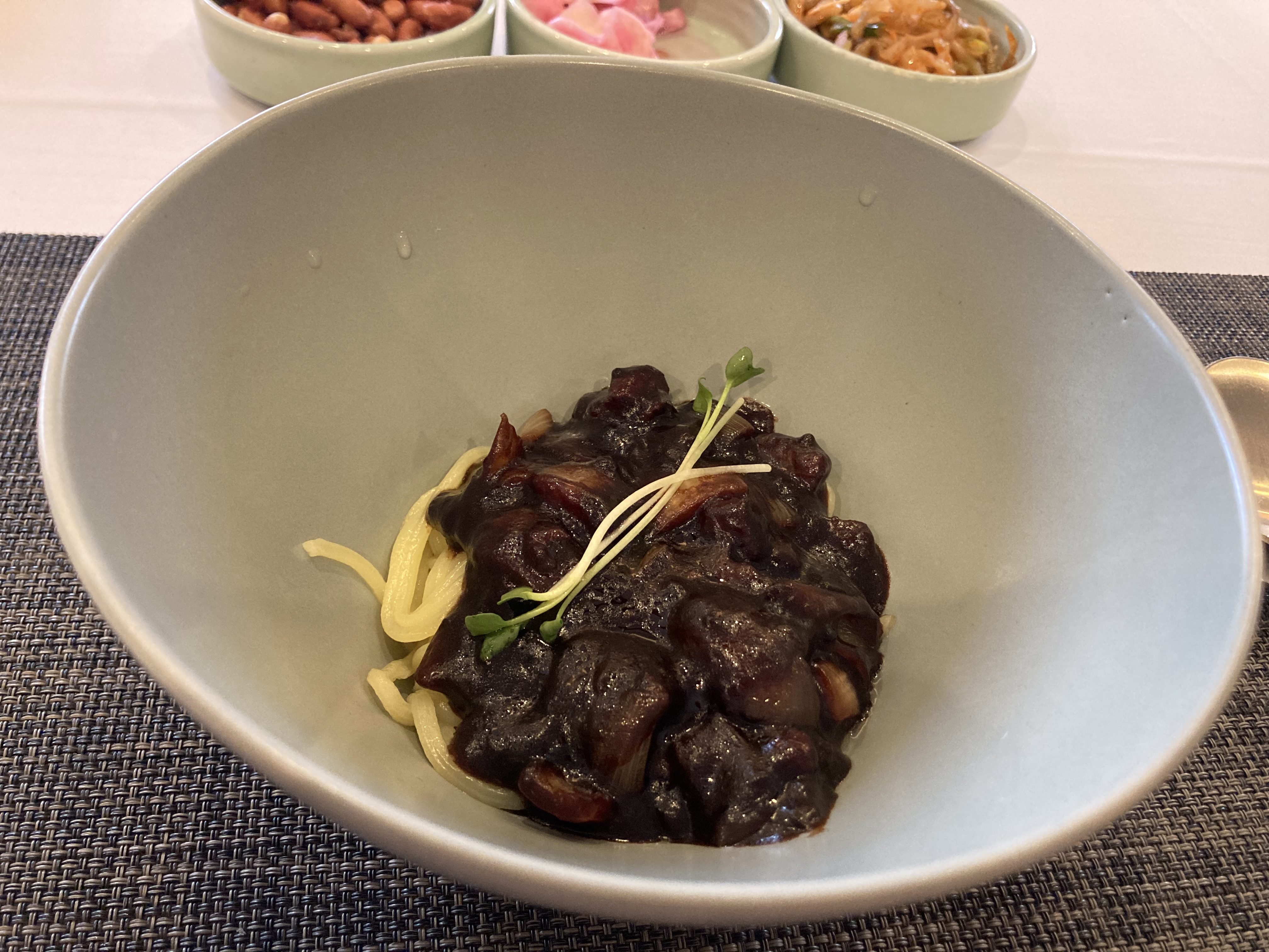 런치 코스는 기본 찬(짜차이 무침, 양배추 피클, 땅콩 볶음)부터 시작해서 각각의 요리가 깔끔하고 균형있게 나와요. 먼저 서브된 땅콩과 짜샤이가 너무 맛있어서 한번 더 요청해 먹었어요. 특히 게살 누룽지 스프는 식사 전 입맛을 정돈해줬고 메인 요리인 칠리새우,유산슬, 가지튀김, 탕수육 등은 각각의 요리를 조금씩 맛 볼 수 있어서 좋았어요. 요리가 거의 나올때 쯤 식사를 선택할 수 있는데 저는 짜장면을 먹었어요. 이역시 무난한 맛이었어요. 후식으로 제공되는 계절 과일은 식사를 정리하는 마무리로 딱이었고요. 사실 음식 하나하나 나쁘지도 매우 맛있지도 않았어요. 모두를 만족 시킬수 있는 무난한 맛이었다고 생각해요.